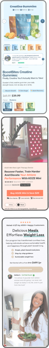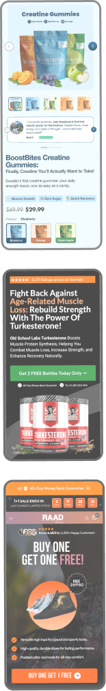 Research-based advertorials and listicles. Designed to educate customers before checkout, increasing purchase confidence and Average Order Value.